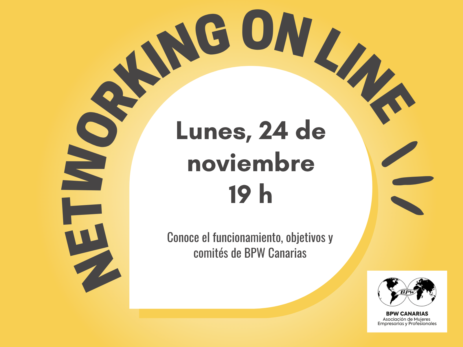 ¿Quién estará en la sesión on line? Estará la presidenta de BPW Canarias, Antonia Varela, las presidentas del Comité de Socias, Claudia Quevedo y Mónica Montesdeoca, así como la coordinadora de Comités, Mónica Radován y otros miembros de la Junta Directiva.
